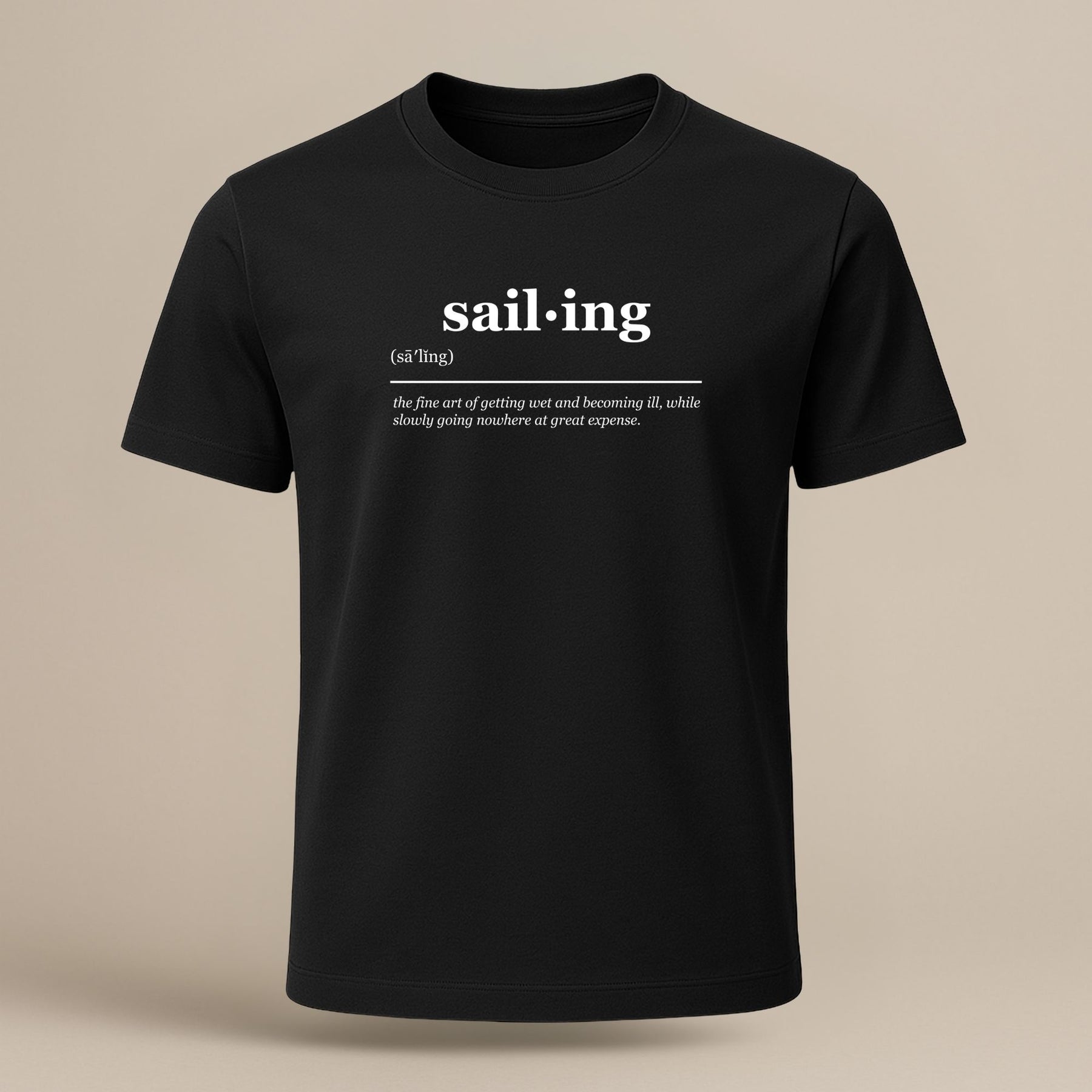 The Sailing Definition T-Shirt blends nautical wit with timeless design. With its tongue-in-cheek definition, it’s made for sailors who know that every wet, chaotic, and costly moment at sea is still priceless.